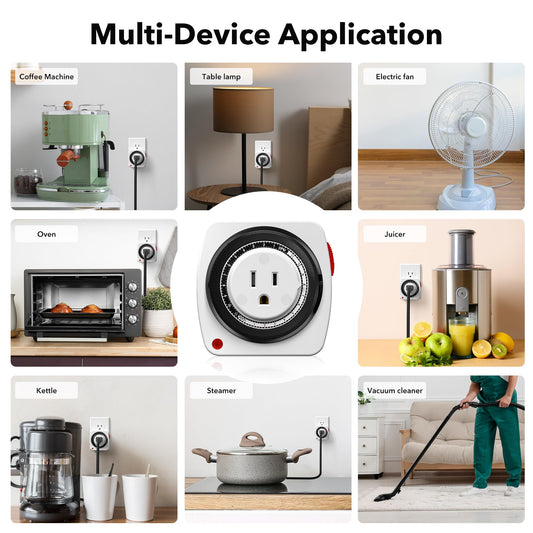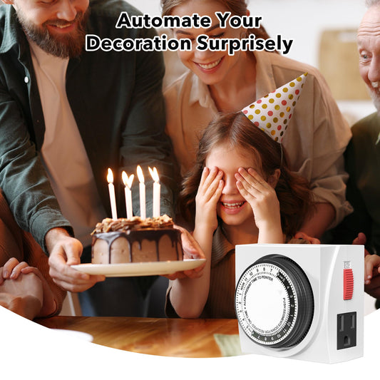 BN-LINK Heavy Duty Mechanical 24 Hour Timer Dual Outlet 3-Prong Accurate Indoor for Lamps Fans Christmas Lights White AC 1875W 1/2 HP, ETL Listed
