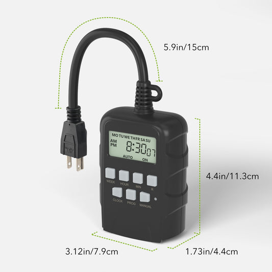 BN-LINK 7 Day Outdoor Heavy Duty Digital Programmable Timer, 125VAC, 60Hz, Dual Outlet, Weatherproof, Heavy Duty, Accurate for Lamps Ponds Christmas Lights 1875W 1/2HP ETL Listed