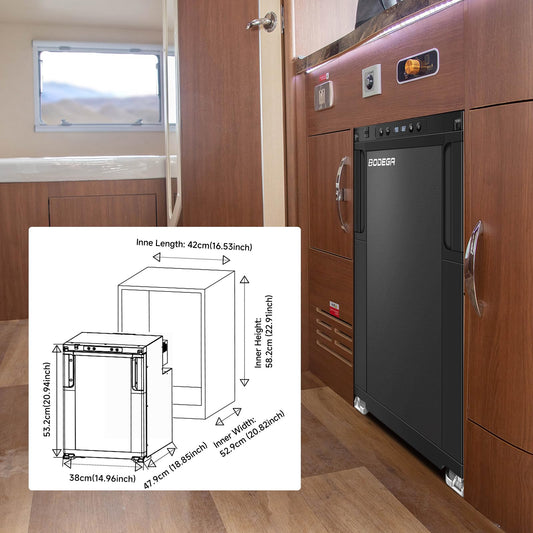 BODEGA [Upgraded 12 Volt Refrigerator, RV Refrigerator APP Control, 45L(1.6cu.ft) RV Fridge and Freezer, Electric Cooler with Lock, (-4℉-46℉) Fridge freezer 12/24V DC for Truck, RV, Camping, Travel