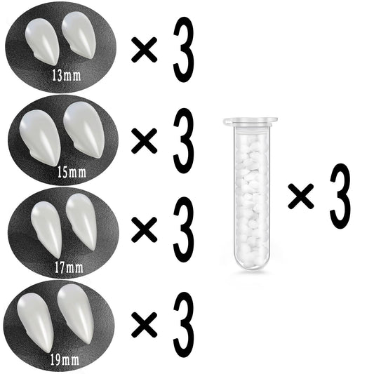 12 Pairs Vampire Teeth for Cosplay-4 Size Fake Fangs with 3 Tube Solid Adhesive for Halloween Props, Anime Party Dress Up Costume Masquerade Accessory Gift for Christmas Party