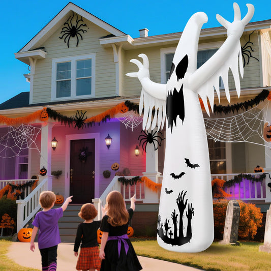 12 Ft Halloween Outdoor Decoration 3 Color Changing Inflatable Ghost with Rotating Flame Red Blue Green LED Lights Giant Blow Up Halloween Decor for Holiday Yard Lawn Garden