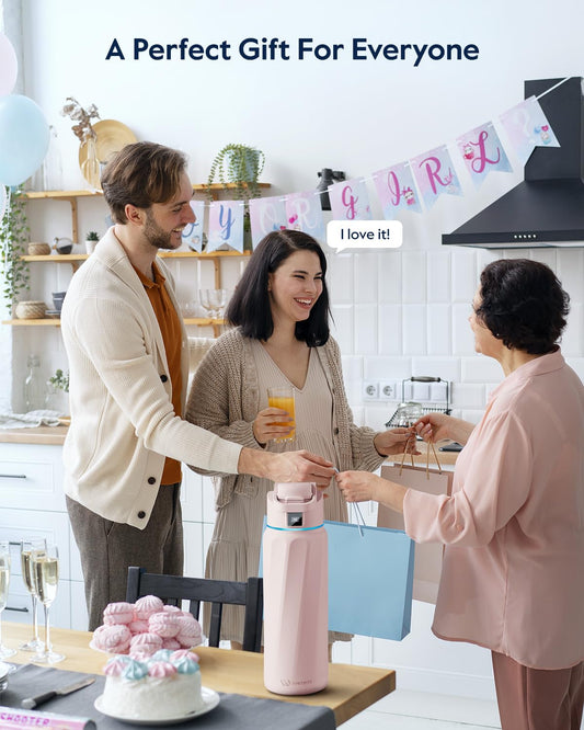 BOOST Smart Water Bottle with Reminder & Tracker, Double Wall Vacuum Insulated Bottles Stainless Steel, 32oz BPA-Free Wide Mouth for Gym, Office, School - Ideal Gift, Pink