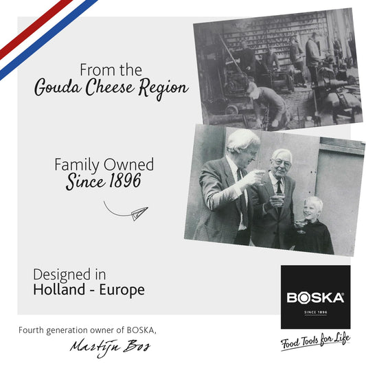 BOSKA Stainless Steel Cheese Knife - For All Types of Cheese Pizza - Multi-Functional Cheese Slicer - Handheld Slicer - Silver Non-Stick Oak Wood - Dishwasher Safe - For Kitchen Cooking