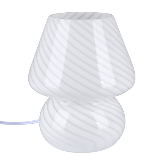 BSOD Mushroom Lamp,Glass Table Bedside Lamps Translucent Murano Vintage Style Striped Small Night Mushroom Decor Light Swirl for Ambient,Kids,Bedroom,Living,Girl Gift (Stripe White)