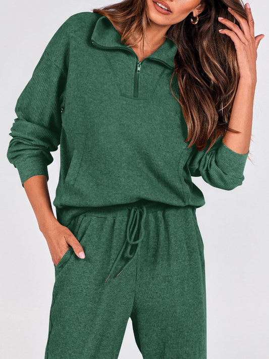 BTFBM Women's 2 Piece Tracksuit Fall Outfits 2025 Long Sleeve Half Zip Sweatshirt Sweatpants Lounge Set Sweatsuits(Solid Dark Green,Medium)