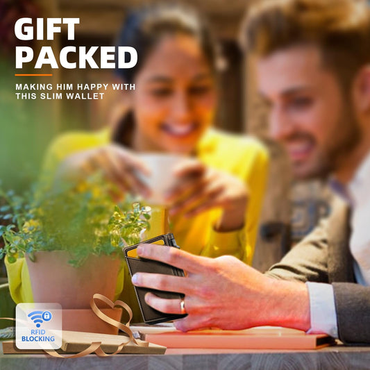 BULLIANT Men Wallet Gift Boxed,Slim Front Pocket Wallet Money Clip Card Holder 3.8"x2.7",Pop-up Access