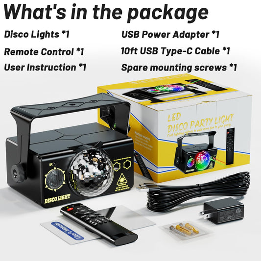 caivimvn Party Lights, DJ Disco Light Disco Ball Light Sound Activated Strobe Stage Lights for Parties Birthday Christmas Gift Wedding Karaoke KTV Bar Club Pub Dance Home Room Halloween Decorations