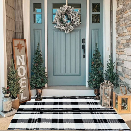 CAINANEL Buffalo Plaid Outdoor Rug Black and White Check Rug 35.4'' x 59'' Cotton Hand-Woven Checkered Front Welcome Door Mat Indoor/Outdoor Area Rug for Front Porch,Kitchen,Entry Way,Living Room