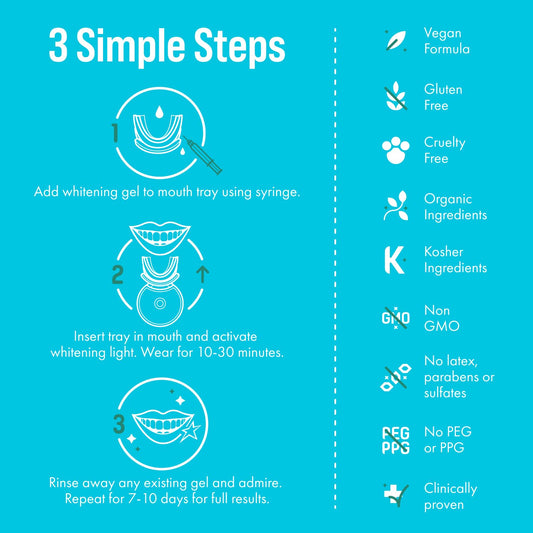 Cali White Teeth Whitening Strip Kit with LED Light and Batteries - Organic Peroxide Teeth Whitening Gel - Set of White Strips - 2x5ml Syringes, Thermoform Whitening Kit Trays and Case