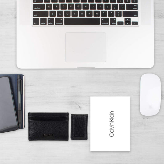 Calvin Klein Men's Wallet Sets-Minimalist Bifold and Card Cases, Black Bessemer, One Size