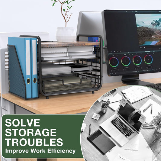 2025 New Large Capacity Desk Organizer with Drawer, Wooden 4-Tier Paper Organizer Letter Tray with File Holder and Pen Holders, Wooden Desk Accessories for A4 Paper Work Folder Storage (Style1)Regular price $42.99Sale price $42.99 Regular priceUnit price per$84.9949%