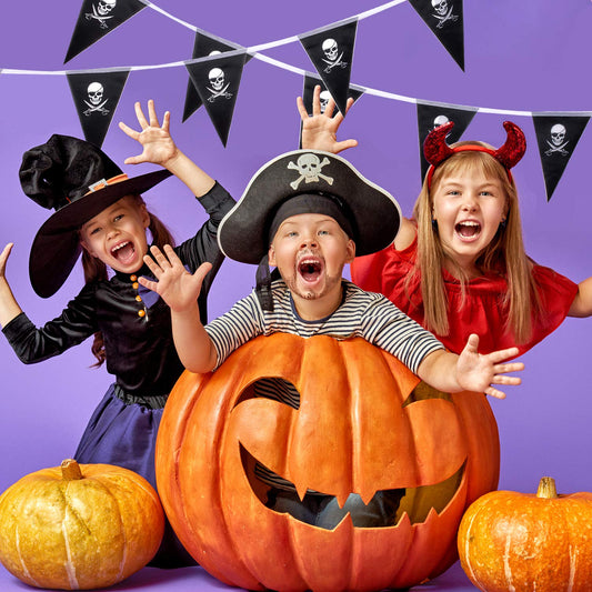 Whaline 31.5ft Halloween Jolly Roger Banner, Skull Pirate Flags 30Pcs Triangle Flags Bunting for Halloween Party Pirate Party and Outdoor Decoration, Vivid Color and UV Fade Resistant