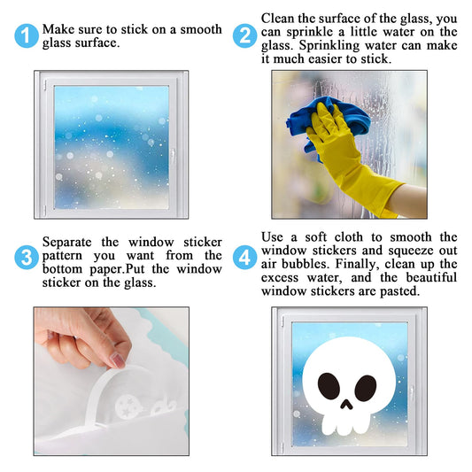 Whaline 9 Sheet Halloween Window Clings Cute Cartoon Ghost Pumpkin Skeleton Reusable Window Decals for Home Classroom Office Haunted Party Decor