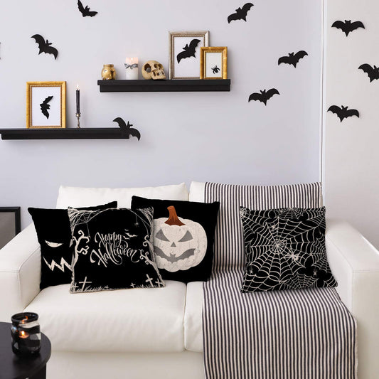 Whaline Happy Halloween Pillow Cover Pumpkin Spider Web Pillow Case Black Linen Throw Cushion Cover Cushion Cases for Home Office Halloween Sofa Bed Decoration, 18" x 18" (4Pcs)