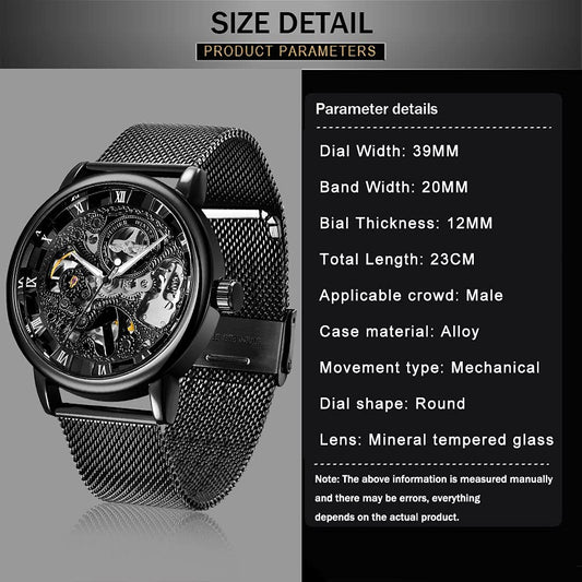 Whodoit Men's Mesh Strap Mechanical Skeleton Watch