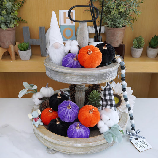 Winlyn 12 Pcs Assorted Small Faux Halloween Velvet Pumpkins Decorative Orange Purple Black Fabric Foam Pumpkins 3" for Fall Wedding Halloween Table Centerpiece Mantel Bowl Décor