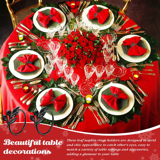 WILLBOND 6 Pieces Leaf Napkin Rings Holders Fall Party Napkin Rings for Christmas Thanksgiving Parties, Wedding Adornment, Table Decoration Accessories (Black)