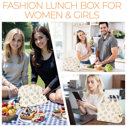 WOBAGMEN Lunch Box for Women,Smiley Lunch Bag Cute Corduroy Insulated Lunch Box With Shoulder Strap for Adult Womens for Work Picnic(smiley)