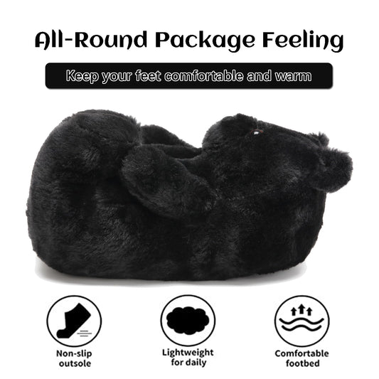 Women's Teddy Bear Slippers Black Fuzzy Slippers for Women Indoor Cute House Slippers for Women Ladies Teen Girls Fluffy Funny Bedroom Animal Slippers for Women Birthday Valentine's Day Gift Ideas