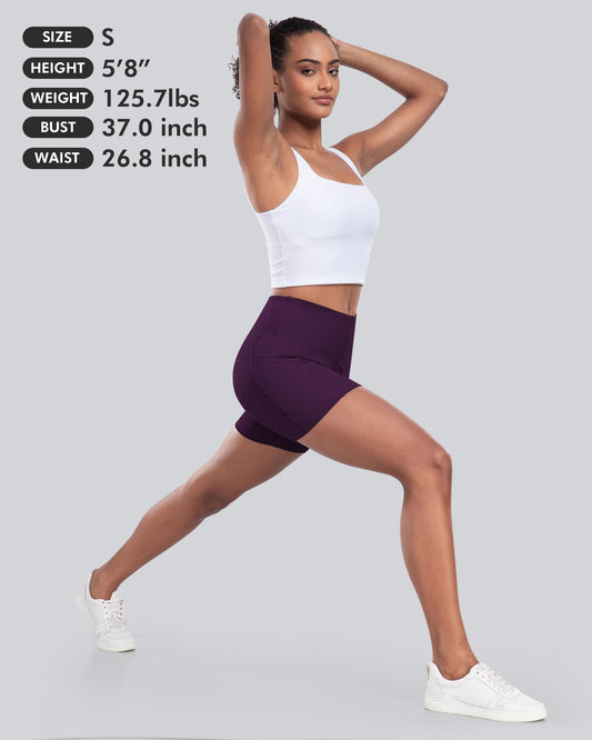 Womens Biker Yoga Shorts with Pocket, High Waisted Tummy Control 5 Inch Workout Spandex Athletic Gym Shorts(Purple,M)