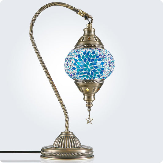 Yarra-Decor Turkish Moroccan Lamp with Bronze Base 3 Color Options Handmade Swan Neck Tiffany Mosaic Glass Bedside Lamps for Bedroom (LED Bulb Included)