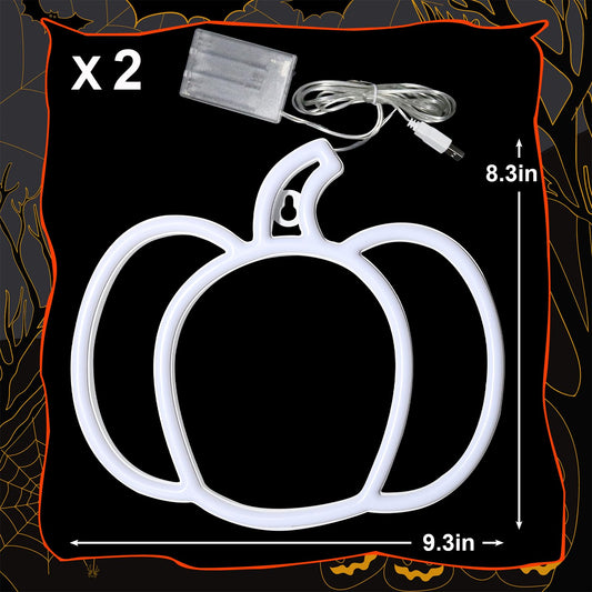 YAOZHOU Halloween Decorations Pumpkin Neon Sign Lights, 2Pack Cute Orange and Green Thanksgiving Lights for Home,Indoor Battery Operated or USB, Fall Decor for Room, Wall, Kitchen, Mental, Bedroom