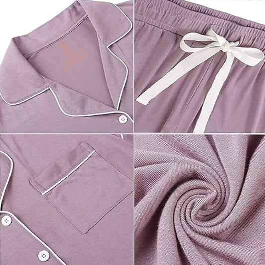 Yoolfine Button Up Pajamas for Women, Long Sleeve Sleepwear Soft Loungewear Ladies Pjs Set, Lavender, Medium