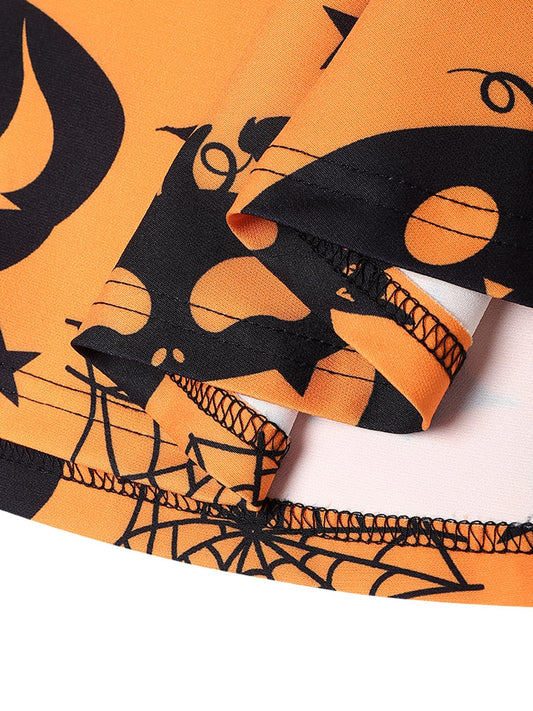 YOINS Women's Pumpkin and Ghost Print Overall Dress Suspender Skirt Pinafore Dresses Pumpkin Orange X-Large