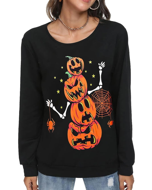 zarmfly Halloween Sweatshirts for Women Pumpkin Skeleton Shirts Long Sleeve Funny Pumpkin Graphic Halloween Tops M 8111