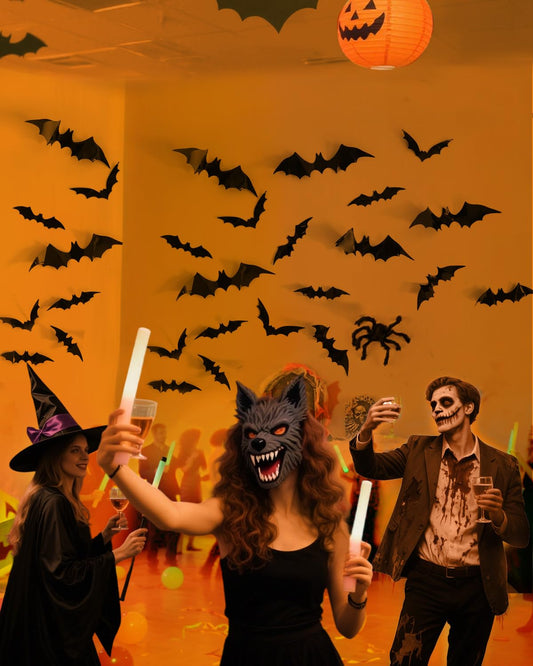 120 Pcs Halloween Decorations 3D Bats Decor, 4 Sizes Scary Halloween Decor Indoor Bat Stickers Decorations for Bedroom Bathroom Door Wall Party Decoration