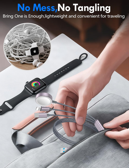 2Pack Multi Fast Charging Cable for Travel Vacation Essentials,iPhone 17 Charger,Apple Watch Charger,3-in-2USB A/Type C/Lightning Cable for iWatch,iPhone 17-11,Nintendo Switch,Airpods,Home,Office-4FT