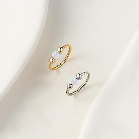 2Pcs 18G Hypoallergenic Cartilage Earrings for Women & Men 316L Surgical Steel Huggies Earrings for Sensitive Ears, Lightweight Mini Thin Jewelry for Tragus/Helix/Nose Multiple Piercing Opal Earrings