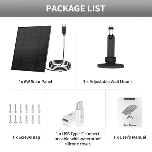 2PC 5W Solar Panel for Security Camera, Solar Panel with Micro USB & USB-C Port for DC 5V Outdoor Rechargeable Battery Camera, IP65 Waterproof, 360° Adjustable Security Mount, 9.8ft Cable(Black)