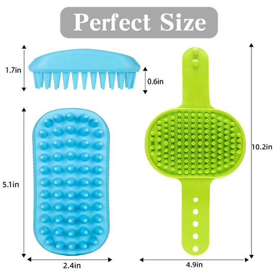 2PCS Dog Bath Brush Set | Adjustable Handle Dog Scrubber for Shampooing, Deshedding & Massaging, Suitable for Pets (Green Blue)