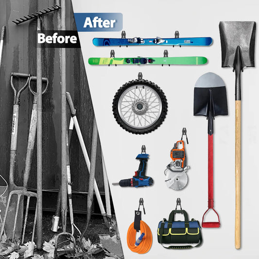 3-H Garage Wall Hooks 14 Pack, Garage Hooks Heavy Duty with Extra Welding Spots, Wall Mount Storage Organizer for Hanging Garden Lawn Tools, Ladder, WeedEater, Chair, Shovel, Blower (Black)
