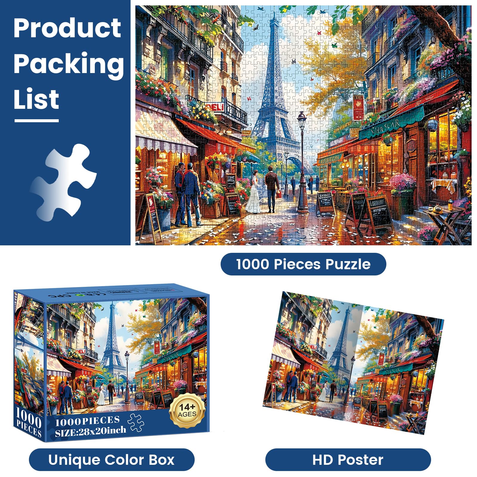 1000 Pieces Puzzle for Adults - Charming Paris Puzzle for Adults Children - Recycled Paper Jigsaw Puzzle 1000 Pieces - Fun and Challenging Family Game Great Gift Idea, Finished Size is 28 * 20 in