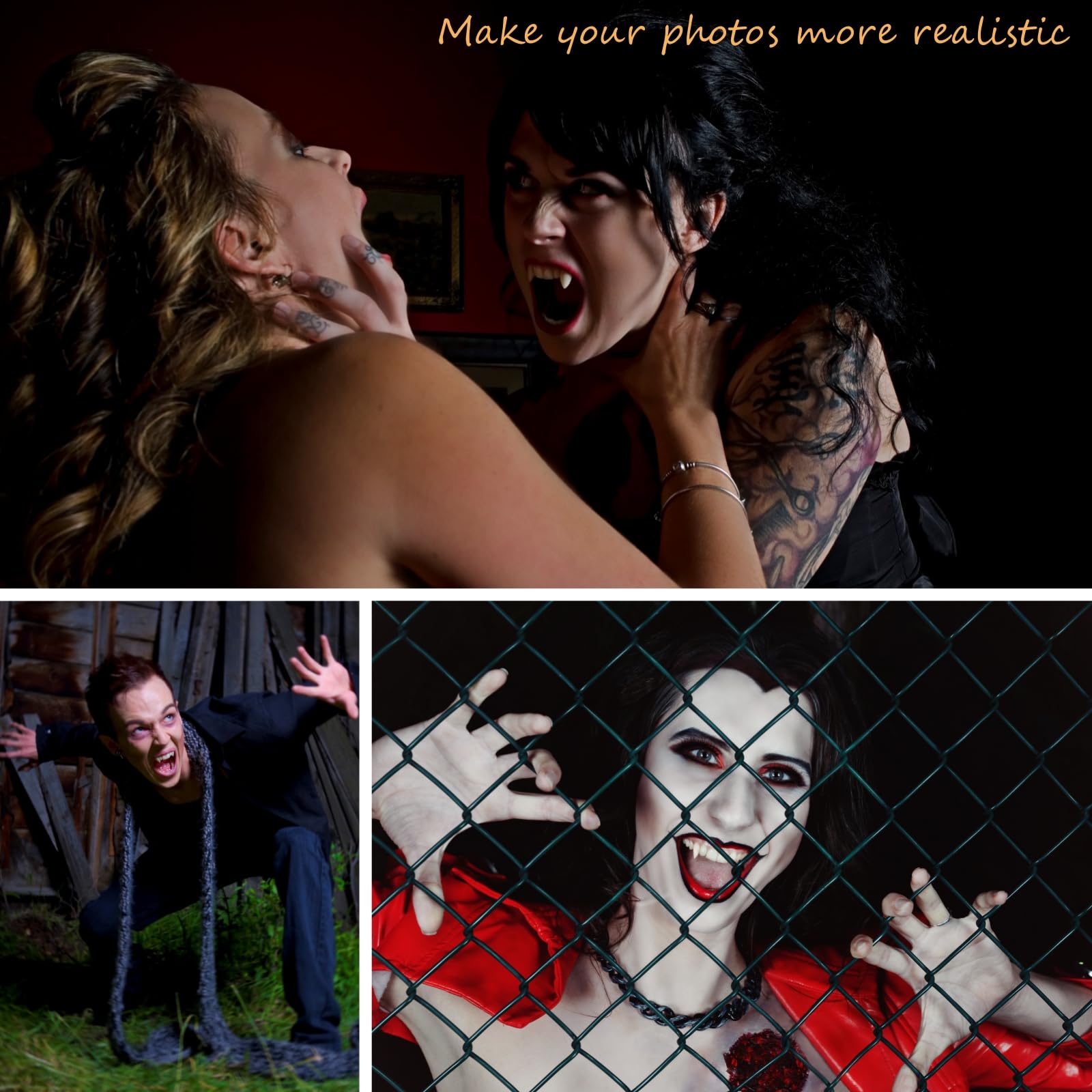 • Ideal Cosplay Accessories: Great for Cosplay,Halloween,Christmas,Carnivals,Masquerade and Fancy Dress Parties. The most real Vampire Teeth Fangs, increase your charm, help you to be the focus in the party.