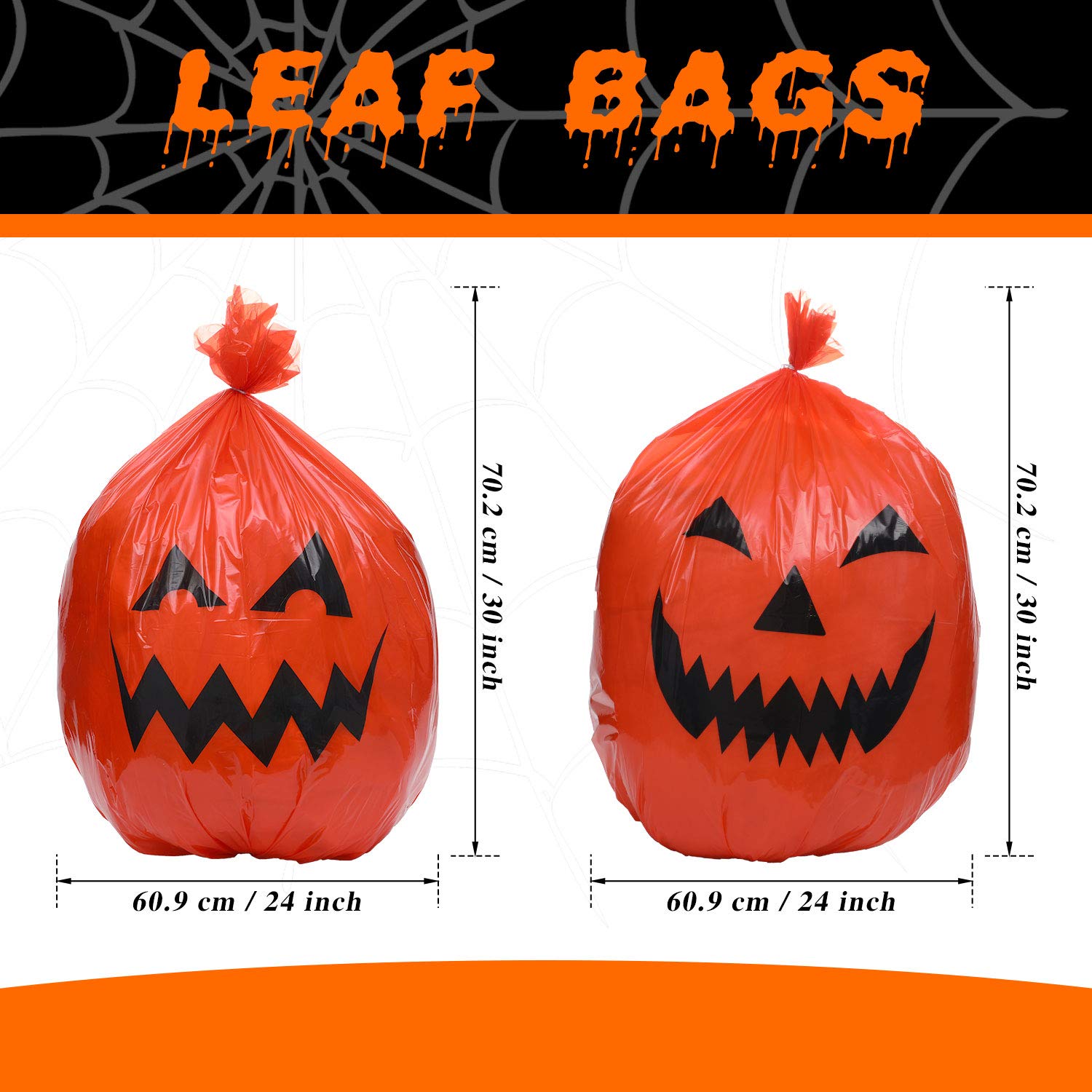 Details: 12 Pieces pumpkin lawn bags Halloween plastic leaf bags pumpkin pattern lawn bags for outdoor fall Halloween trash bag decoration pumpkin lawn bags jack-o-lantern