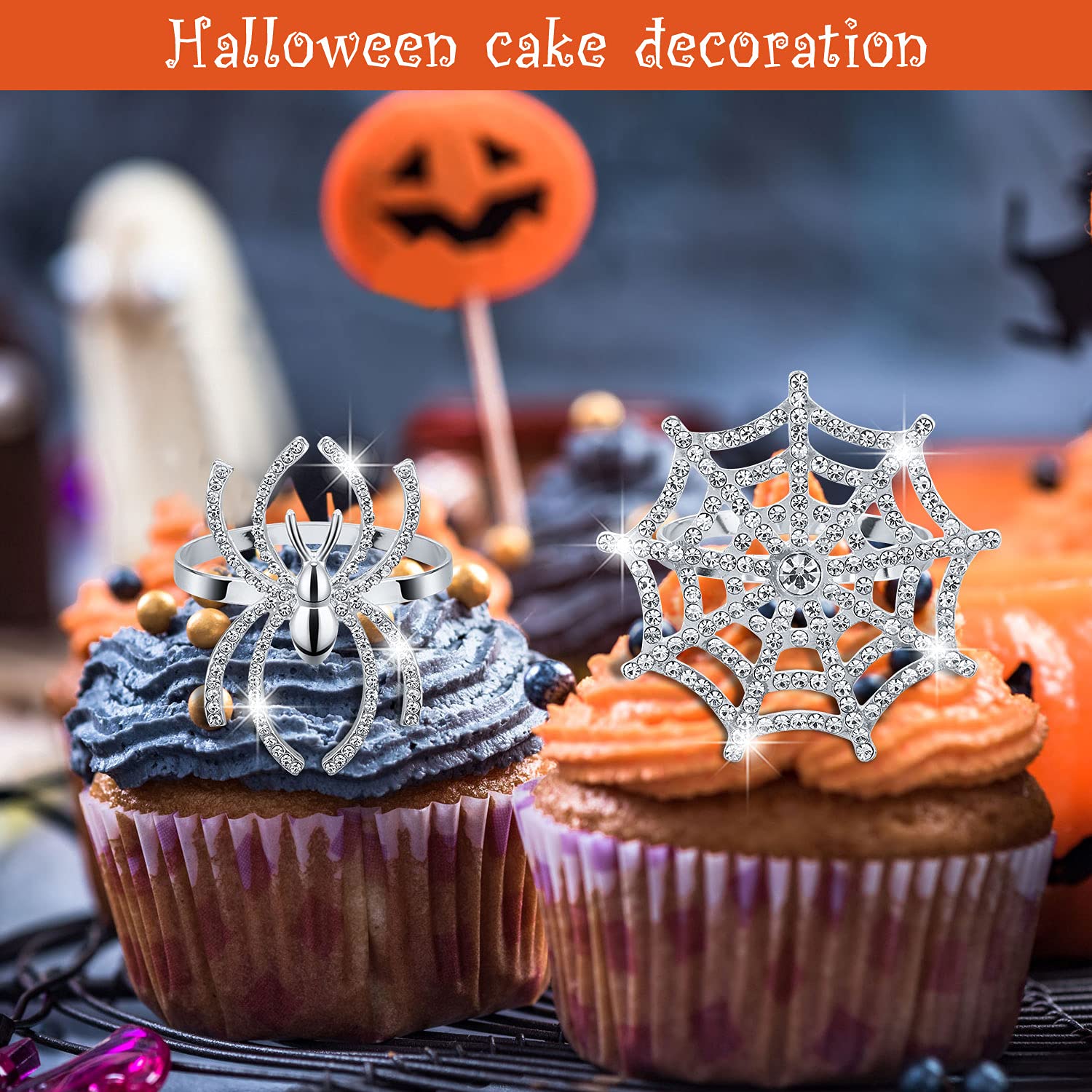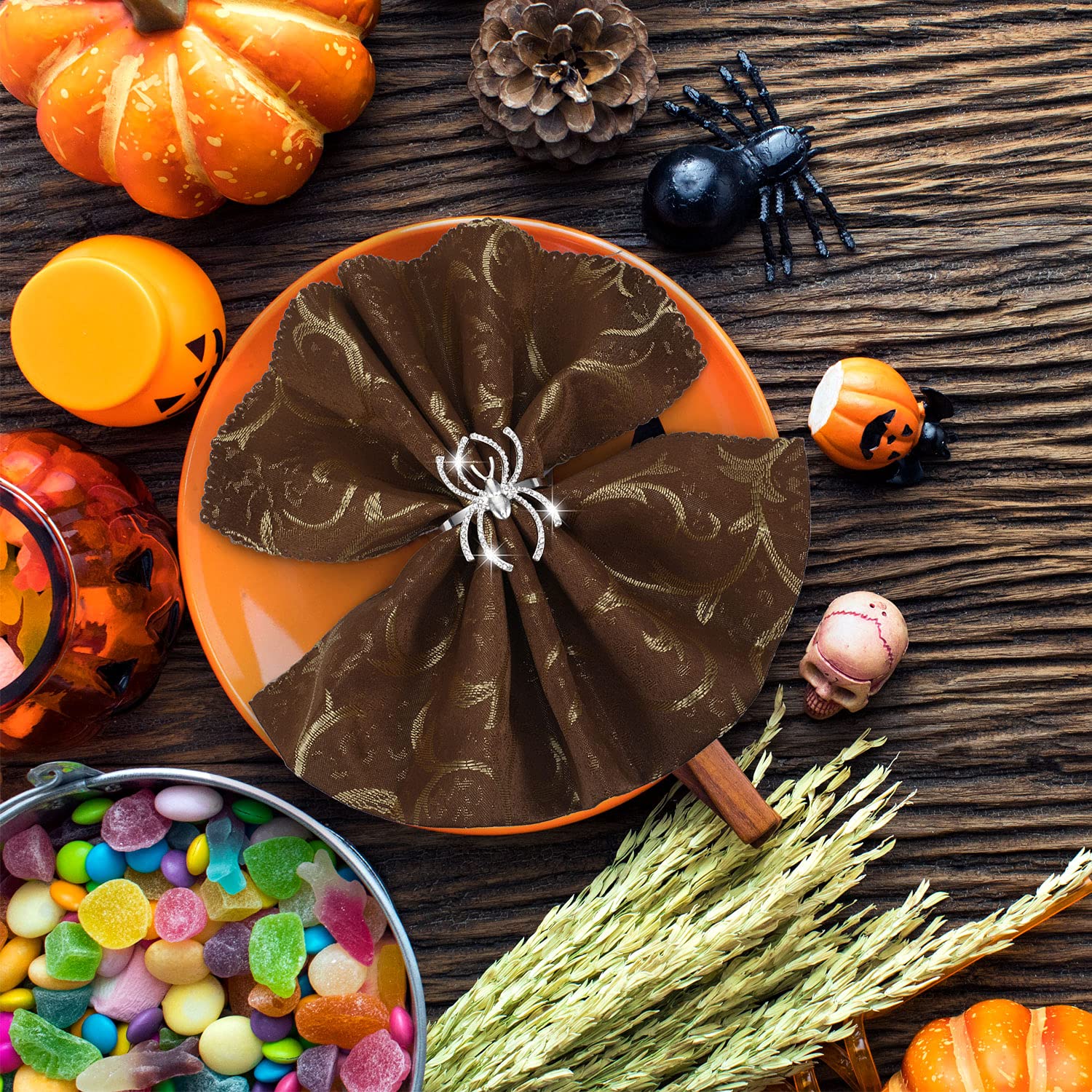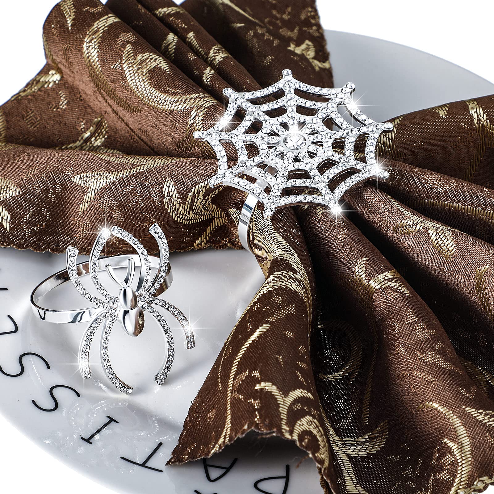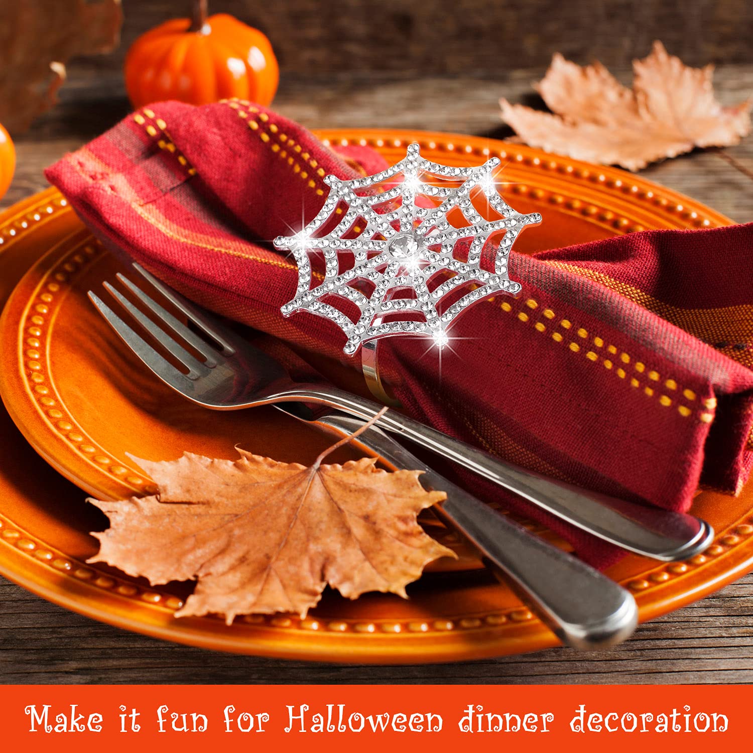 12 Pieces Spider Napkin Rings Halloween Napkin Ring Spider Web Napkins Rings Set Metal Spooky Napkins Holder Serviette Buckle Party Supplies for Halloween Dinning Costume(Silver,with Rhinestone)