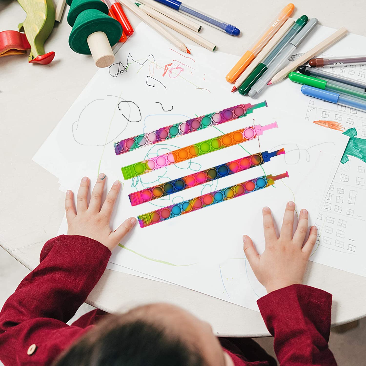 • 【Premium Quality】Our wristband fidget toys are made of high-quality silicone material, the material is soft and easy to keep clean,will not cause any harm to humans and pets,so you don’t have to worry about your child's safety.