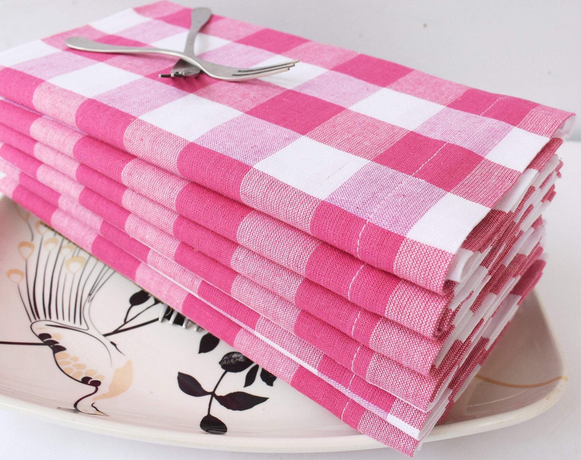 12Pack 100% Cotton Yarn Dyed Gingham Check Dinner Napkins 18x18Inch,Clambake Beach Party Nautical Dinner Napkins as Well, Color Pink/White