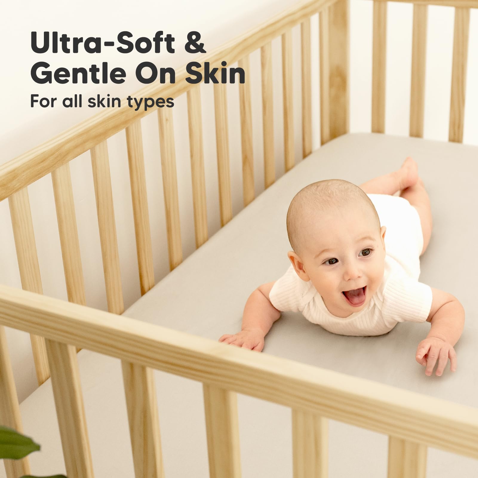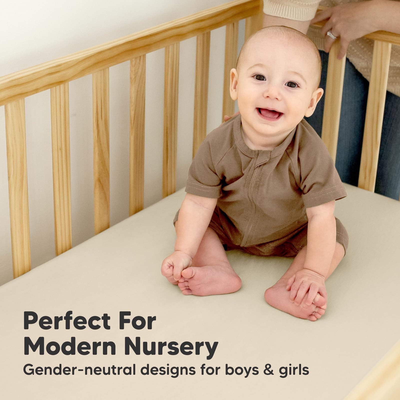 • Temperature-regulating - So soft and cool-to-touch, these temperature-regulating baby crib sheets neutral provide undeniable comfort for all seasons and never disappoint. They fit standard-size crib mattresses 52'x28' (3'-8' height).