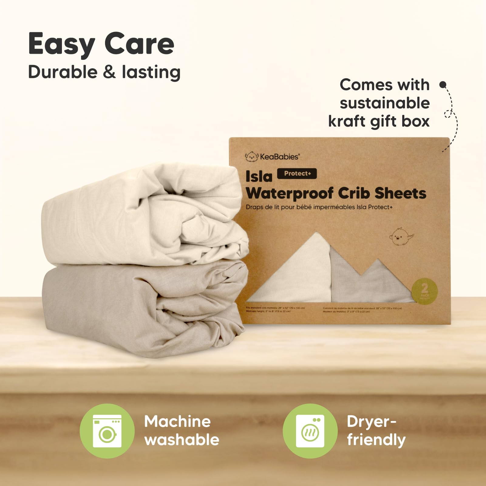• Waterproof Game Strong - The Isla Protect+ Fitted Crib Sheets feature a built-in waterproof lining that acts as a crib mattress protector, preventing stains and without the need for an extra bed cover, all without compromising on comfort.