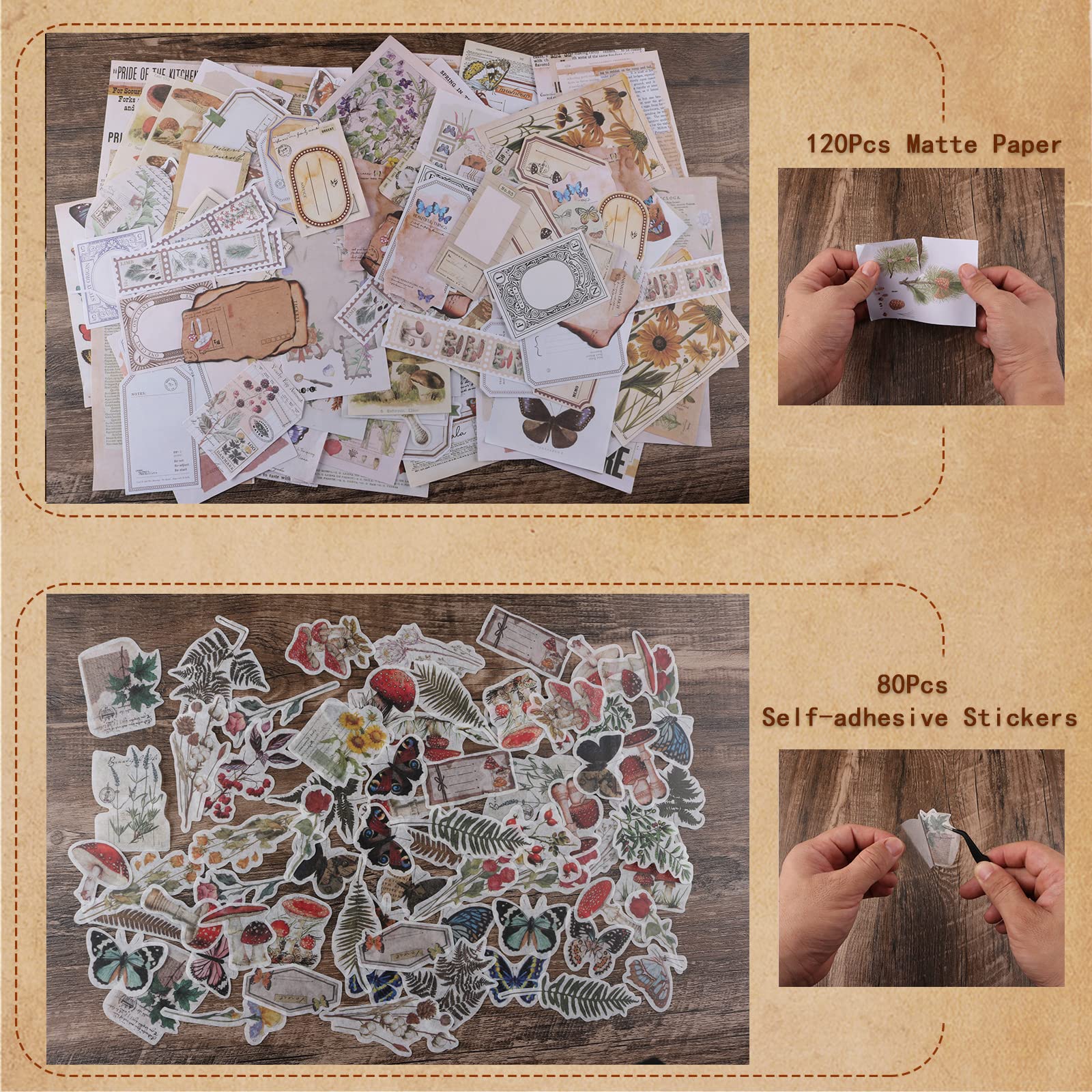 200Pcs Vintage Scrapbook Stickers, Aesthetic Junk Journal Stamping Supplies Kit, Scrapbooking Ephemera Washi Paper for Bullet Journaling Planners Diary Collage