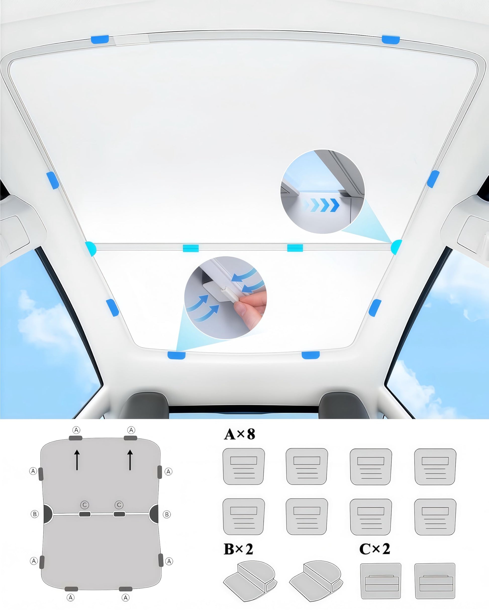 • 【Easy Installation and Removal】Designed for a perfect fit, this segmented roof sunshade offers optimal coverage and consistent sun protection for the entire roof. The shade is easy to install and remove, making it a convenient option for any car owner. Secure attachments keep the shades firmly in place, while the compact and foldable design ensures easy storage, saving valuable vehicle space. Enjoy comprehensive protection and convenience with our thoughtfully engineered accessories
