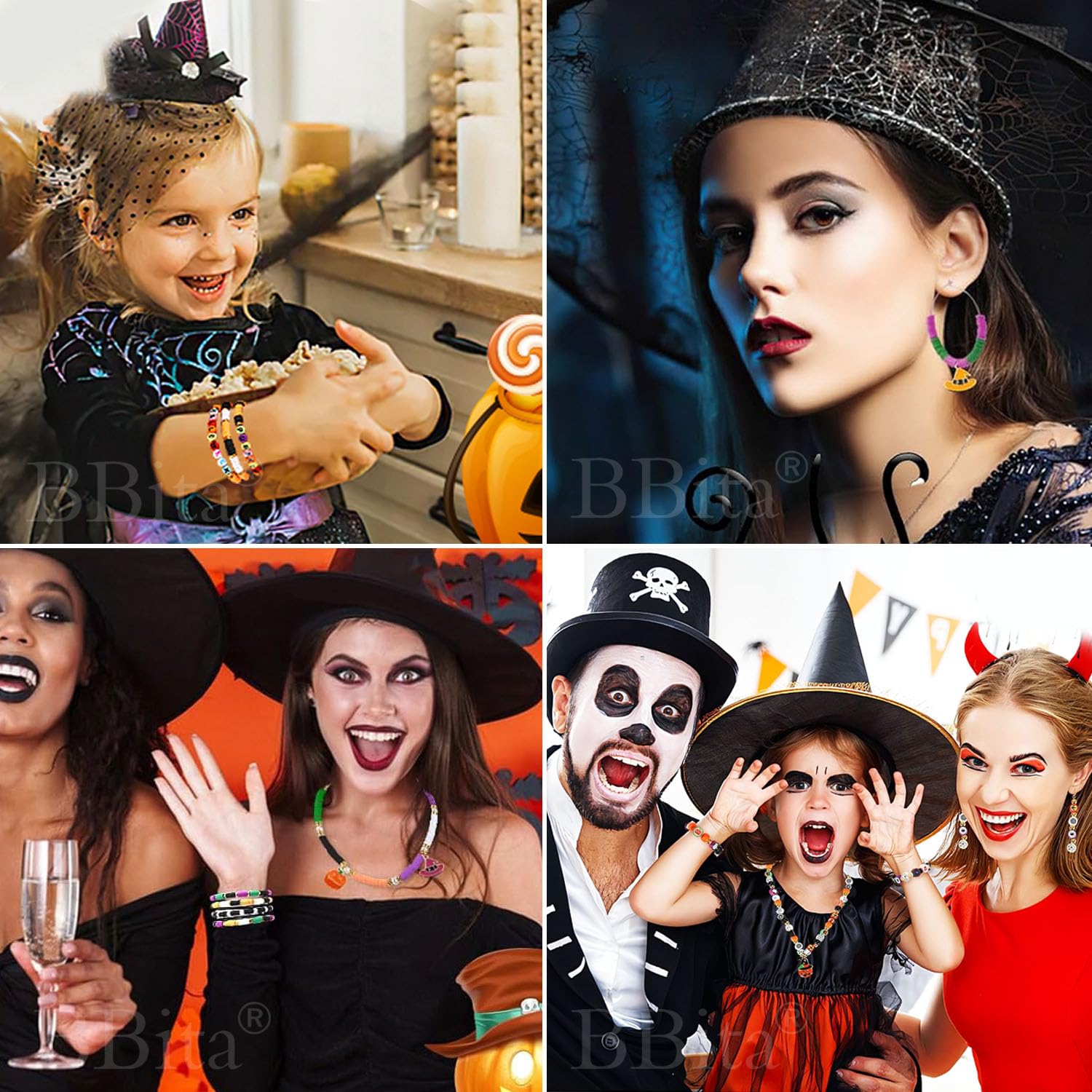 2088pcs Halloween Polymer Clay Beads Bracelet Making kit, 24 Style Cute Fun Beads Skull Pumpkin Beads Charms for Jewelry Necklace Earring Making DIY Accessories for Women Girls