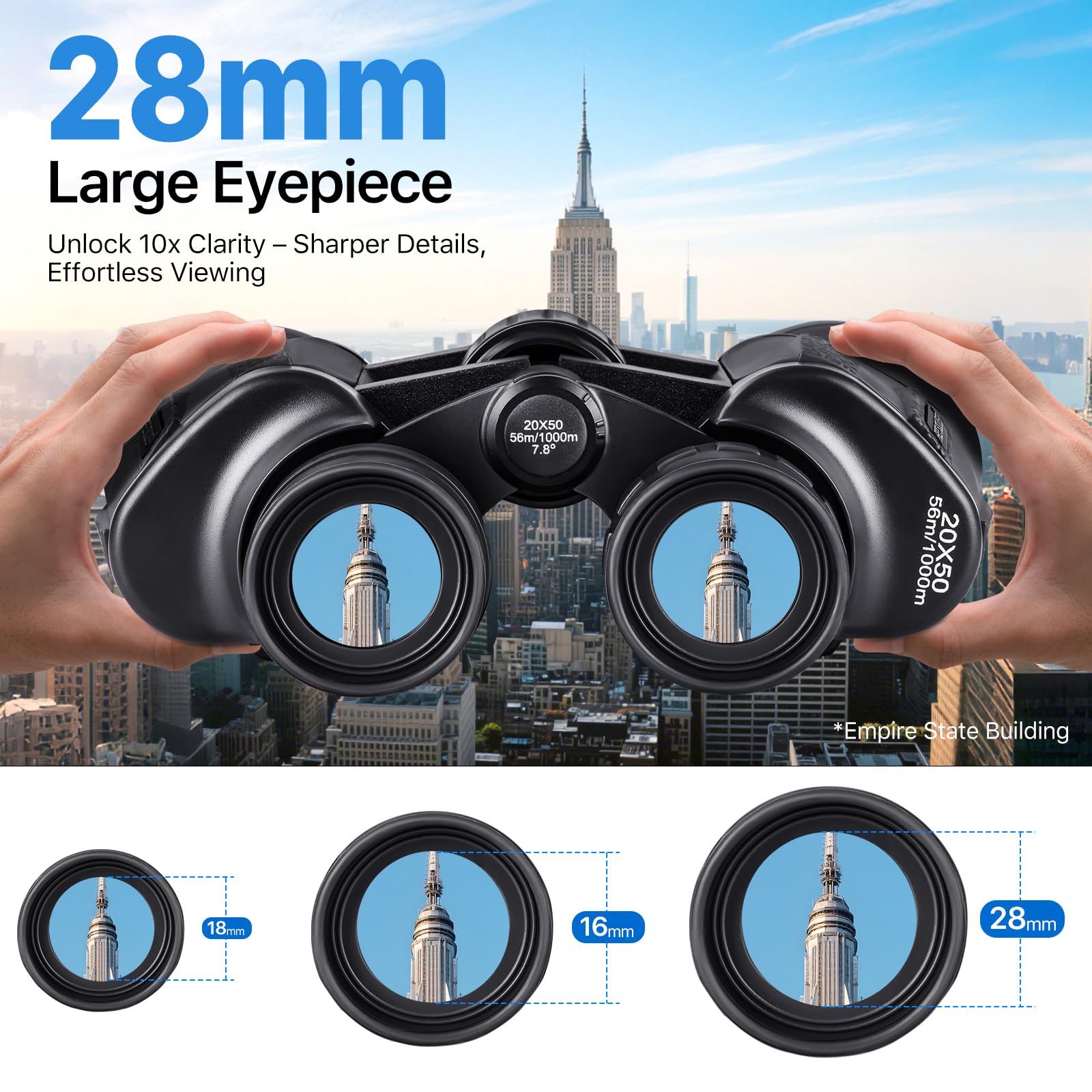 20x50 High Power Binoculars for Bird Watching 28mm Large Eyepiece Life Waterproof Binoculars for Hunting Hiking Concert Travel with Smartphone Adapter BAK4 Prism FMC Lens, Black