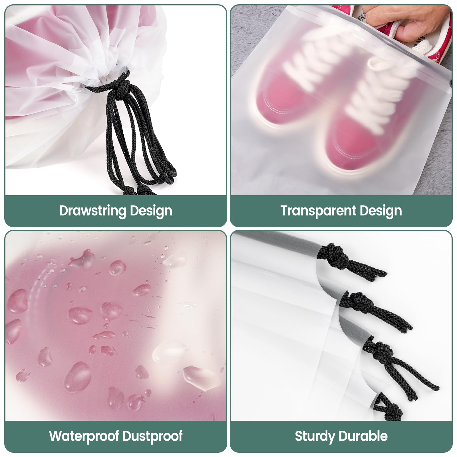 • TRANSLUCENT DESIGN: The translucent design of the shoe bags for travel helps you quickly identify what's inside,Save your time, protect your privacy, and be convenient for travel and life
