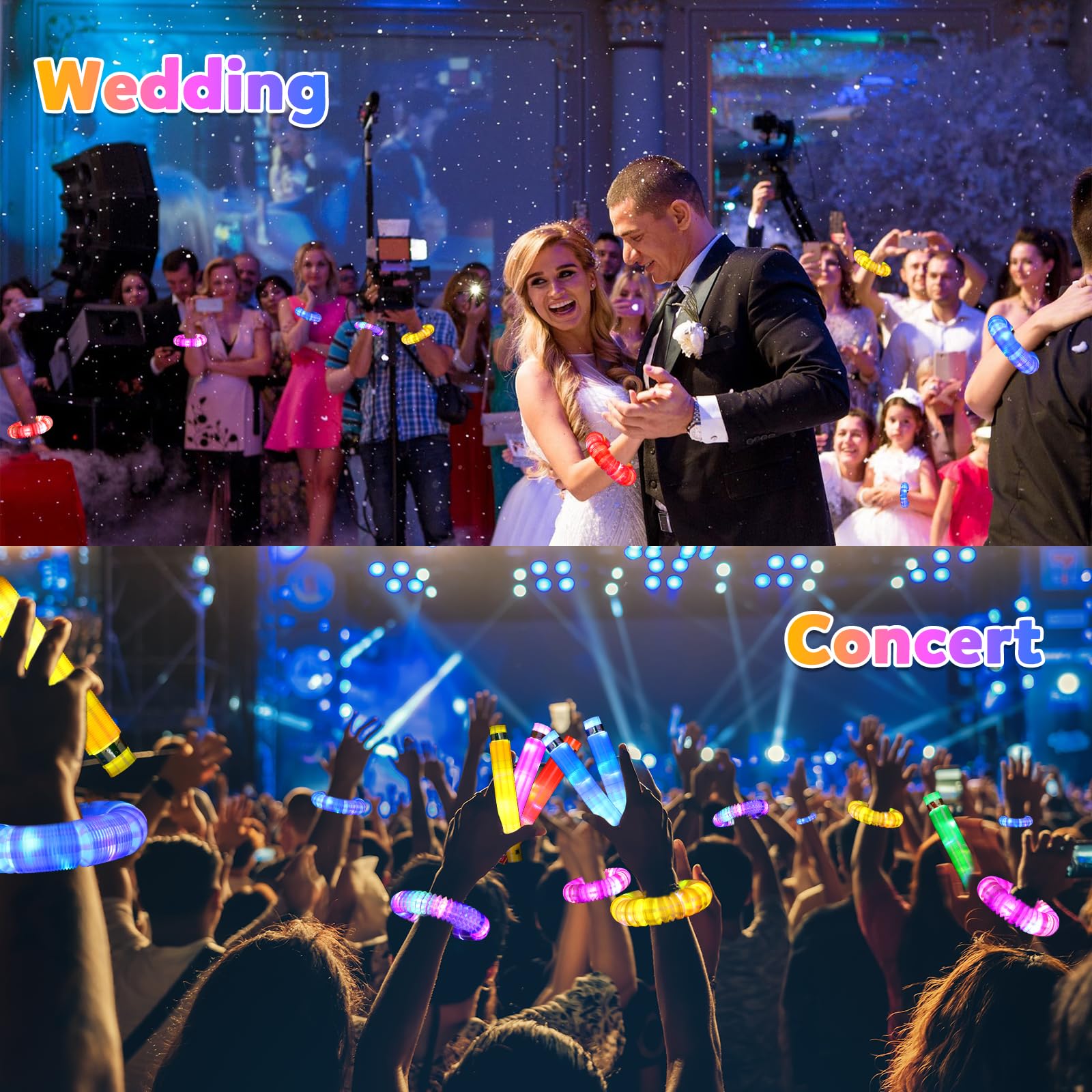 • Bulk Glow Sticks: The box include 24 pcs glow sticks, which is about 8.3' long and stretch to 25'. Spice up your glow parties with these glow in the dark party decorations