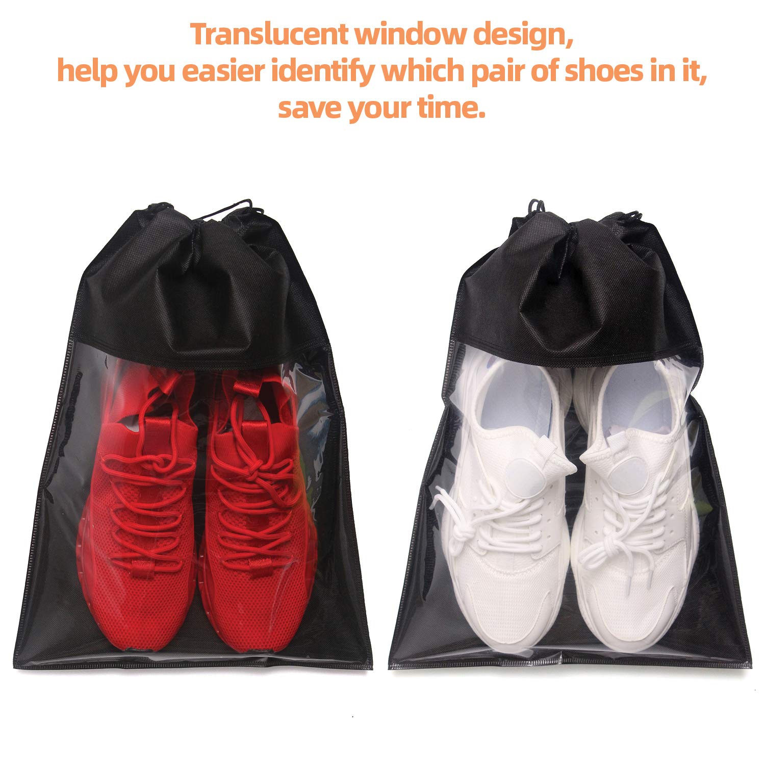 - 【TRANSPARENT WINDOW DESIGN】Easily and quickly identify the content in the Bags. The storage bag helps to keep purses and shoes clean, dust free, and organized. It can be applied as shoes bag for yoga class, running, dancing, exercises, travelling and so on.